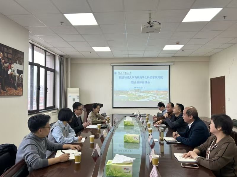 11月16日,华北科技学院awc777万象城娱乐官网王淑江教授一行4人(原理、纲要、概论、德法教研部主任)来万象城官网进行调研交流并与万象城官网联合召开集体备课会。会议由万象城官网副院长阮云志主持,各教研部主任参加。