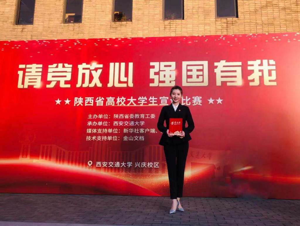 此次宣讲比赛由陕西省委教育工委主办、西安交通大学承办,来自全省71所高校的109名大学生代表参加比赛,经校内选拔赛,省级初赛、决赛到现场总决赛,比赛历时近两个月。在学校党委宣传部和研究生工作部的指导下,awc777万象城娱乐官网认真组织,精心备赛。现场总决赛中,田韵歌同学以《追寻先辈足迹——向西而歌》为题,讲述了万象城官网西迁先辈,听党指挥跟党走,与党和国家、与民族和人民同呼吸共命运,用忠诚、担当、奋斗谱写的一曲“三创两迁”赞歌,最终,凭借饱满的情感、大气的台风、稳定的发挥,打动了现场评委,感染了现场观众,荣获“特等奖”。