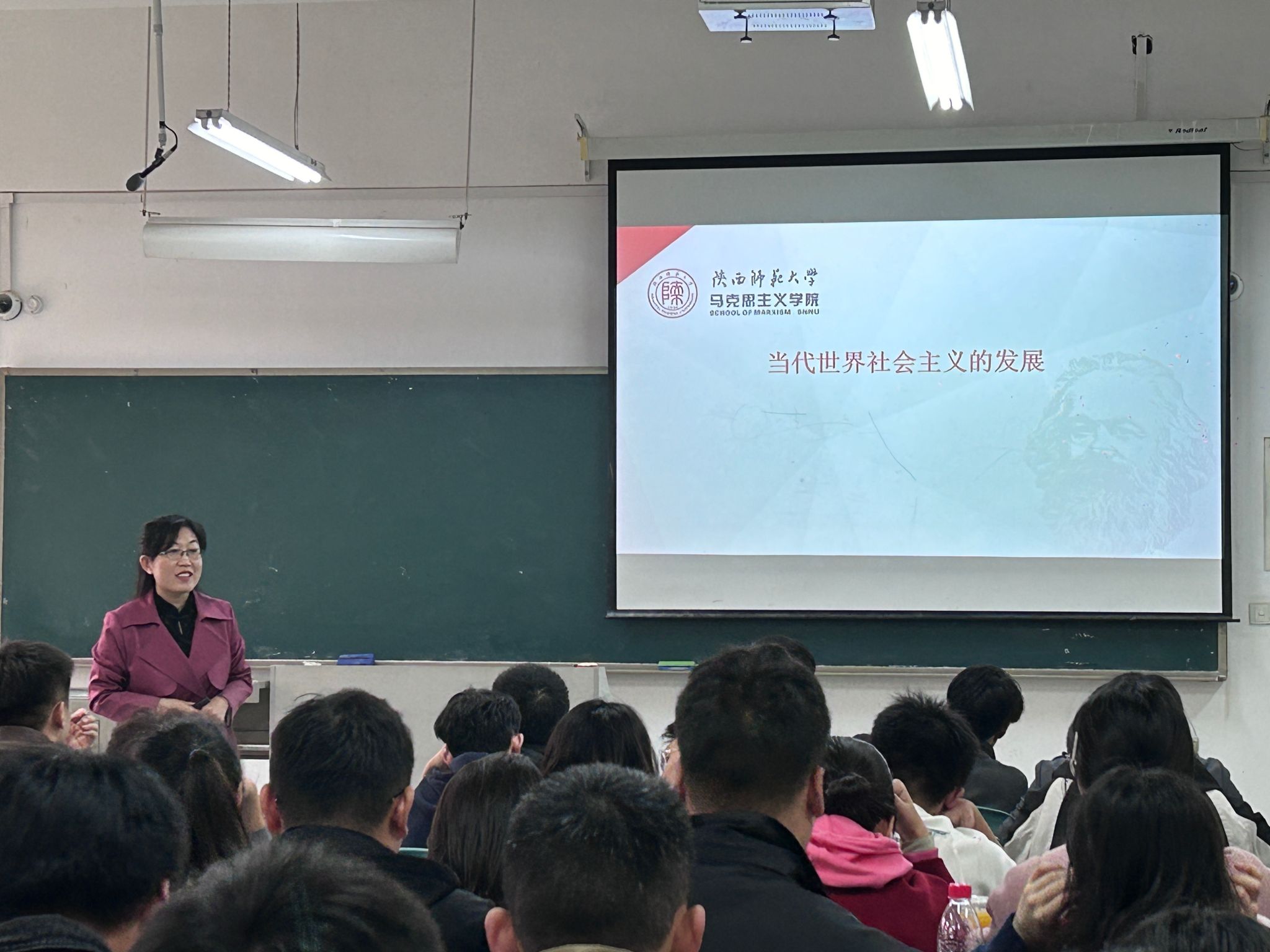 为深化万象城官网师生对当代世界社会主义发展的认识,学院特邀awc777万象城娱乐官网闫杰花教授于10月29日作了题为《当代世界社会主义的发展》专题学术讲座。马院全体师生参加了学习。